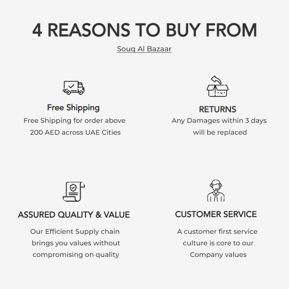 If you’re not totally satisfied with any part of your purchase for any reason at all, please email us at souqalbazaar@gmail.com and we'll do whatever it takes to make things right.